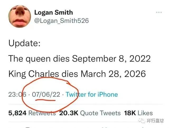 推特上曾经有一件奇闻,一位网友曾精准预测出英女王伊丽莎白二世的去世时间,并且买一送一,附上查尔顿三世的驾崩时间,预测是在“2026年3月28号”。