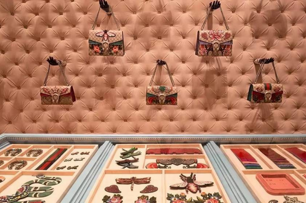 在Gucci米兰的Gucci Garden,你可以在其经典的 Gucci Dionysus “酒神”系列手袋上尽情DIY,选择自己喜欢的材质、刺绣图案、镶边配饰、手柄款式等等。每件单品都可以在内衬印上你名字的首字母。