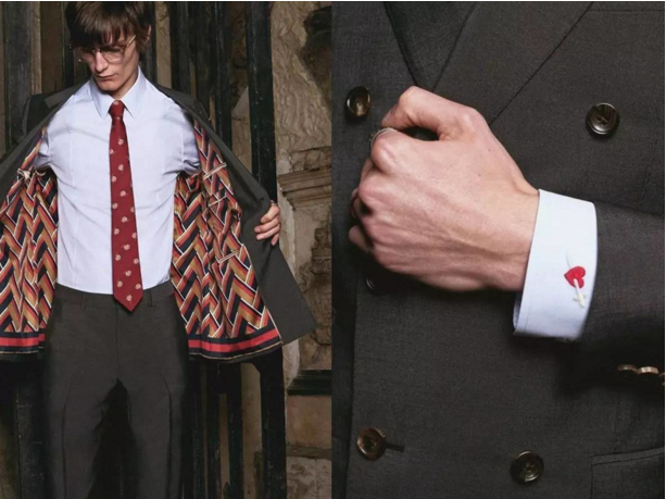 而除了包袋,Gucci DIY 服务在男士西装、中性的丹宁外套、飞行外套,还有男女鞋款上也进行了个性化改造。无论是袖口的细节,还是整体的风格,都可以自由发挥。