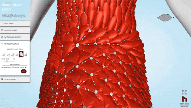 这条裙子出自美国一家叫做“Body Shape Explorer”的 公司,它使用3D打印技术制作,由 1600个形状不同的花瓣构成。名字也十分好听,叫做“运动的花瓣”(Kinematic Petals dress)。在这家公司的网站上,你可以选择自己的三围、体重、身高等来创建自己的模特并设计、订制自己的礼服。