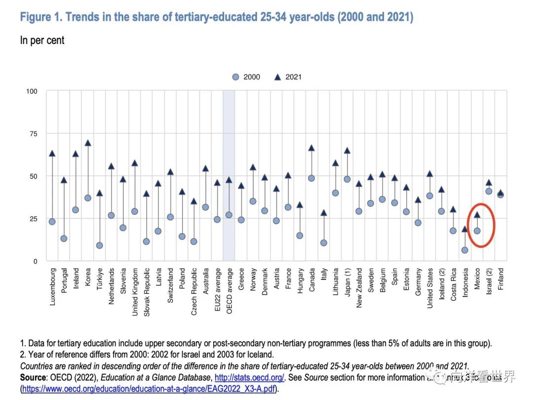 4. 在墨西哥政府大幅增加教育经费投入之前,墨西哥的教育水平还会在OECD中吊车尾。
