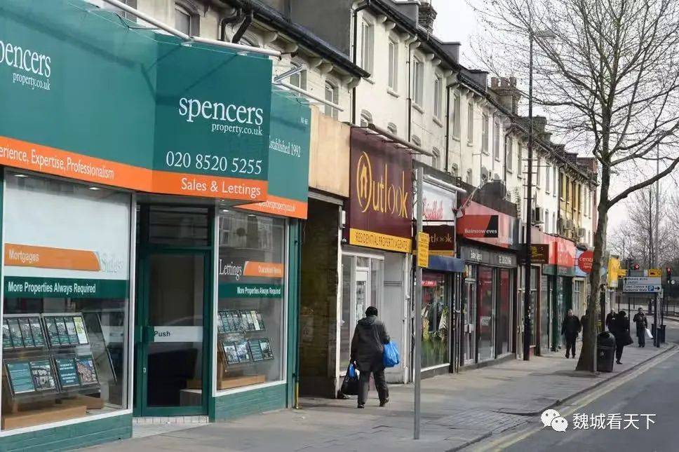 在英国的商业街上,无论是像伦敦这样的超大城市,还是不起眼的小村镇,最引人注目的店铺之一,大概就要算房地产中介店了。