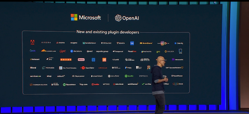 微软旗下的各种生产力套件和云服务,再加上 OpenAI 目前在大模型和 ChatGPT 等生成式 AI 产品上的领先优势,再加上双方携手打造 plugin(插件)标准、想要实现“一次开发全网通用”的互联互通,两者携手打造全新 AI 生态的野心已经完全显露出来。