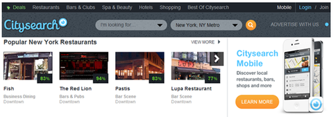 CityGrid Media是一家在线网络媒体公司,主要是通过Web和移动平台发布本地新闻内容和广告以及消费者导向(类似城市指南),下面包括Citysearch.com 、InsiderPages.com等等,广告主要采用按效果付费方式,Citysearch.com覆盖7.5万个地点,1800万家本地商业。