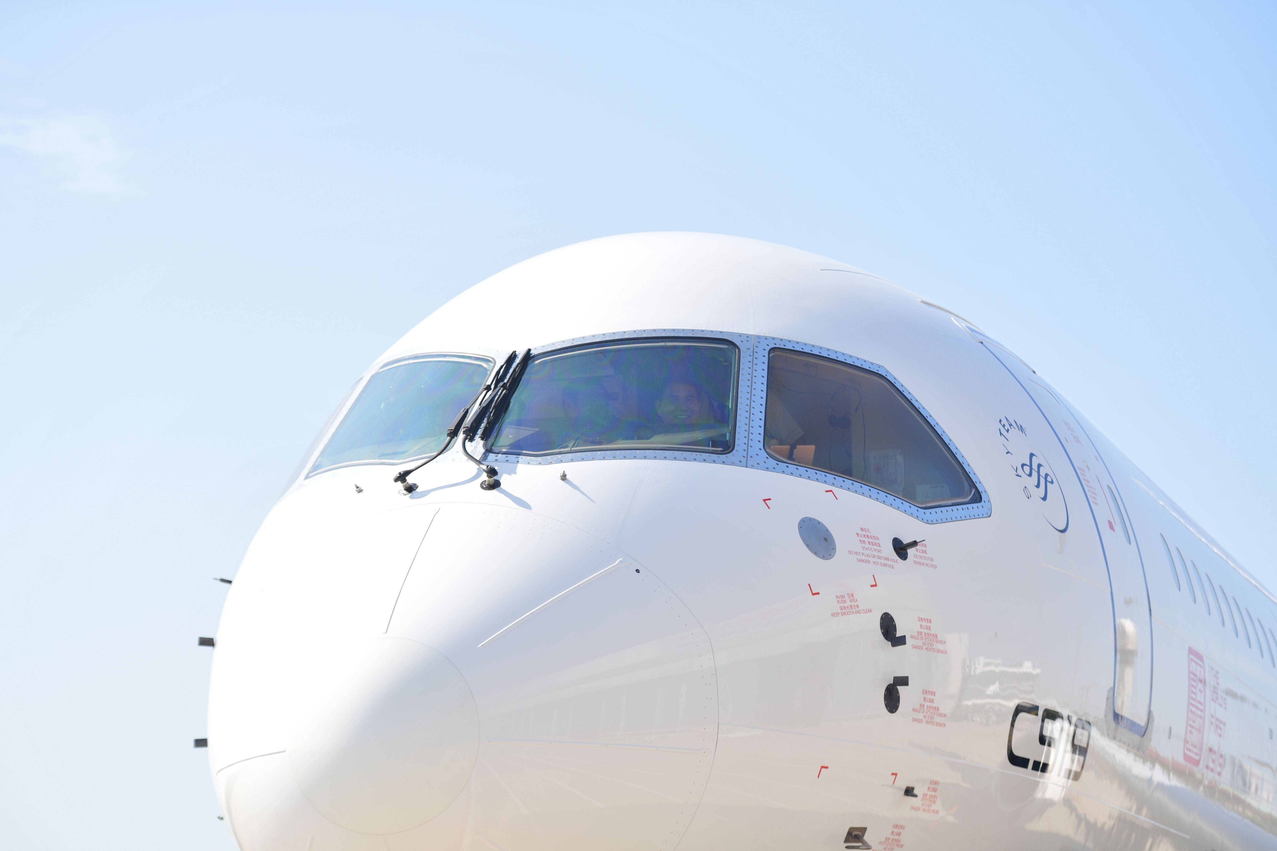 C919首航机长在驾驶舱内 中国东航供图