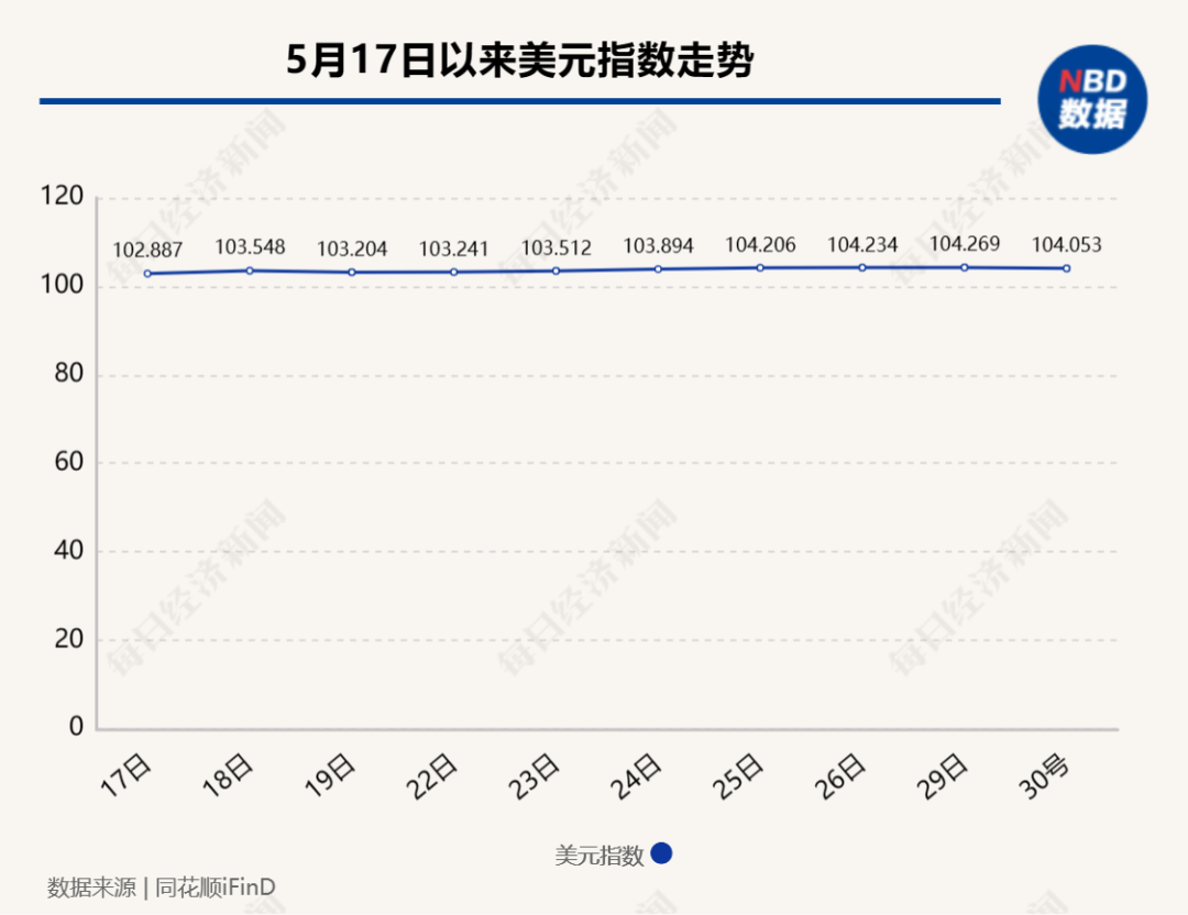 植信投资研究院高级研究员常冉在接受每日经济新闻记者采访时指出,5月以来,海外避险情绪推升美元指数回弹,在国内经济修复较弱、居民购汇需求集中释放的影响下,人民币汇率出现贬值压力。