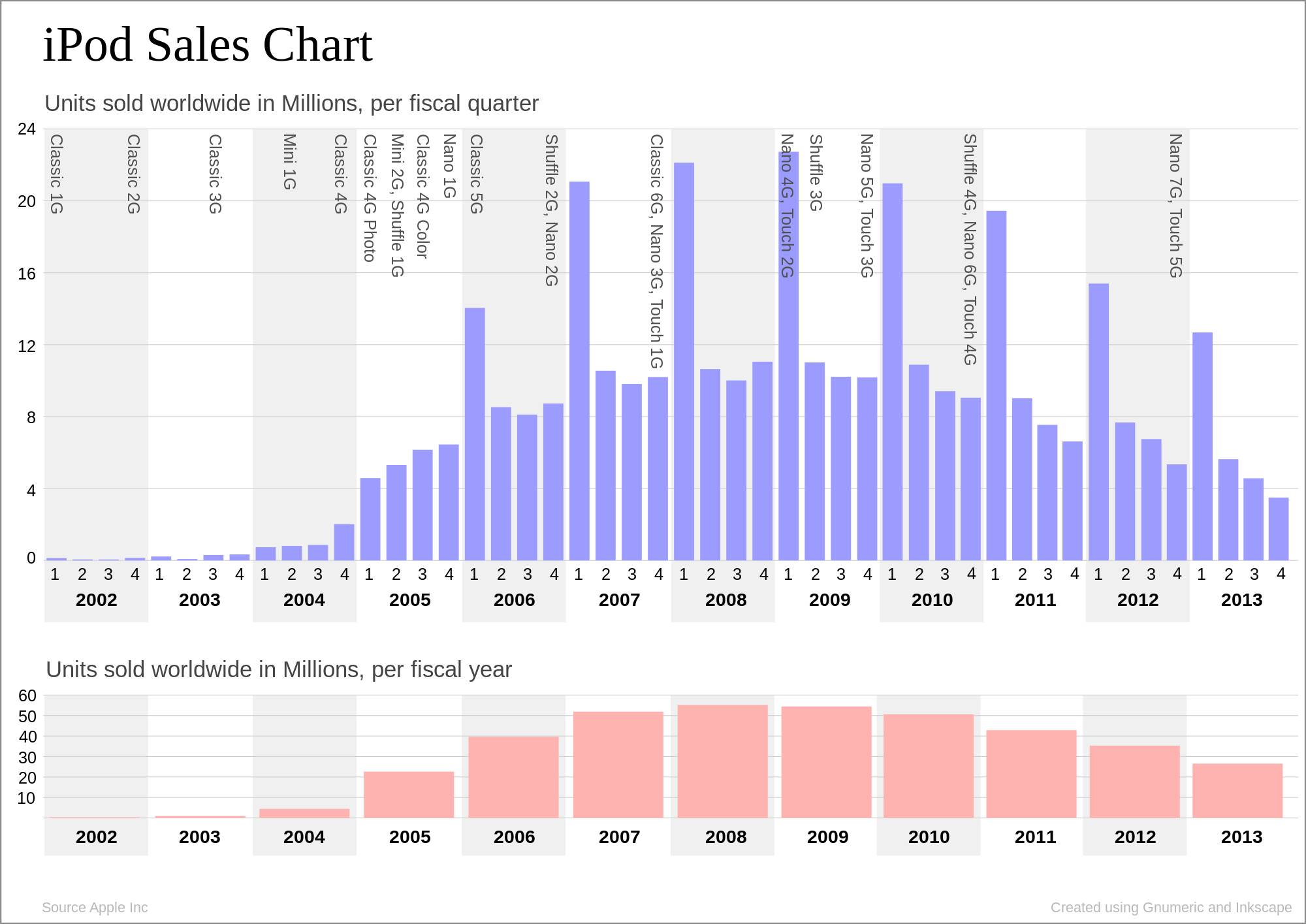 ▼2006-2008年iPod的销量连创纪录,二者的合作可谓商业史上的一段佳话: