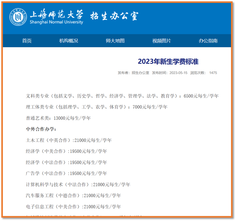 上海师范大学招生办公室公布的2023年新生学费标准中,文科类专业为6500元每生/学年,理工体类专业为7000元每生/学年。而2022年,该校一般专业为5000元/学年。