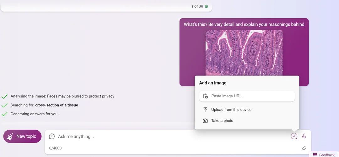 此前微软曾透露 Bing Chat 使用的正是 GPT-4 模型,并在上个月的大更新日志中有提到会为 Bing 加入多模态支持,综合来看,Bing Chat 很可能正在逐步向用户开放识图功能测试。
