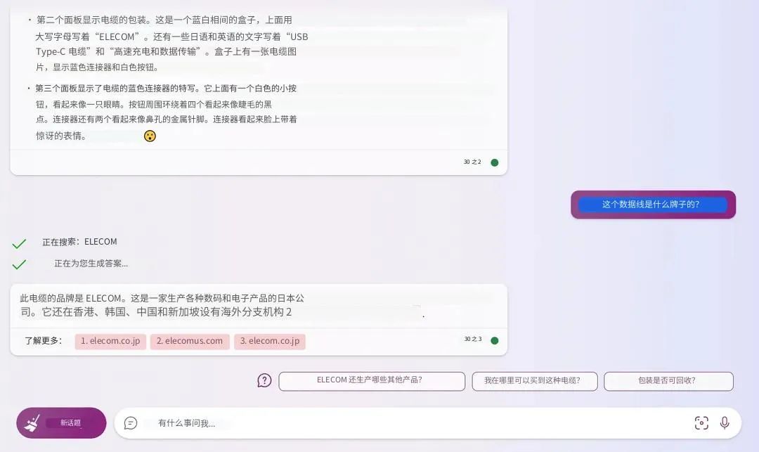不过 Bing Chat 还是一五一十地把照片解读了出来,甚至还能说出线缆的品牌,并给出更详细的资料。