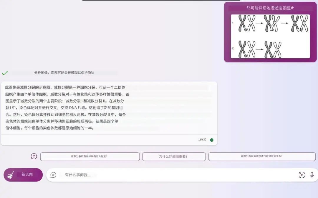 例如让它解释一下染色体在减数分裂时交叉互换的过程。