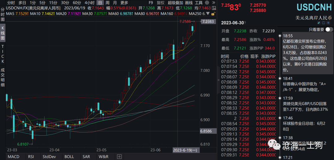 近期,汇率贬值压力较大,人民币已经来到了7.25附近。
