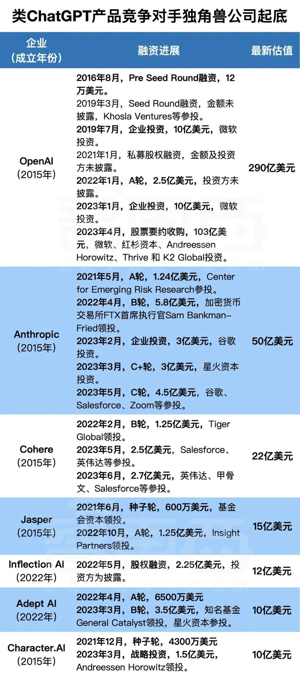 ▲类ChatGPT产品竞争对手独角兽公司起底