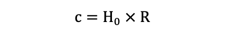 因此我们可以假设可观测宇宙的半径为R,并且将地球与星系之间的退行速度记为Vf,光速记为c,则可以令退行速度Vf = c;这个等式表示当固有距离达到可观测宇宙的半径时,地球与星系之间的相对速度等于光速。这意味着这些星系正在以与光速相等的速度远离我们,超过这个距离的星系将以更快的速度远离我们。