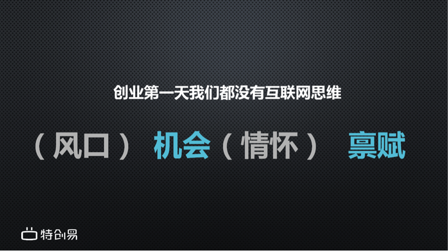 很多人都愿意谈风口,但是我觉得对很多传统背景的人来说,要做互联网,或者要利用这个工具的时候,更重要的是机会。