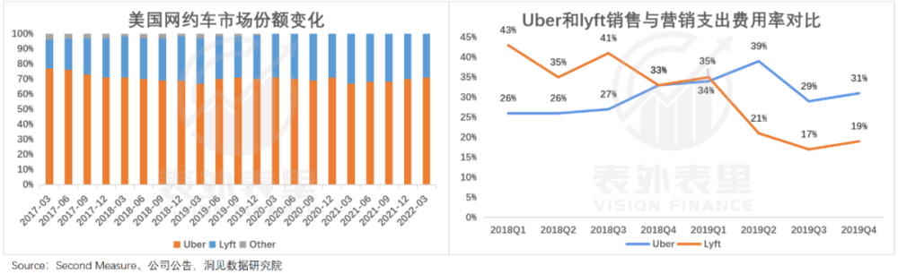 偷塔成功的Lyft想要更多,回过神来的Uber想夺回失去的,两家由此进入针锋相对的恶性竞争。可以看到,2018年两家的销售和营销支出居高不下。