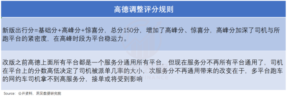 基于此,滴滴、高德都调整了评分规则,约束司机多平台接单的行为。