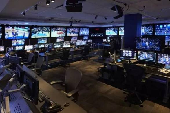 回放中心的作用在于当出现争议球的时候,裁判通过便通过回放中心的回放画面进行裁决。2014 年的时候,为了让裁判更加清楚地进行判罚,NBA 新任总裁亚当·萧华牵头建立了全新的高科技回放转播中心:在转播中心中拥有高达 94 块高清监视屏,可以清晰地监测到 29 个球馆的每一个角落。