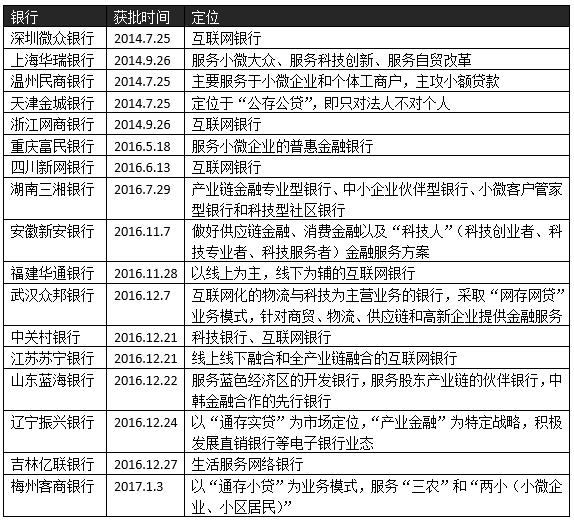已获准筹建的17家民营银行的不同定位
