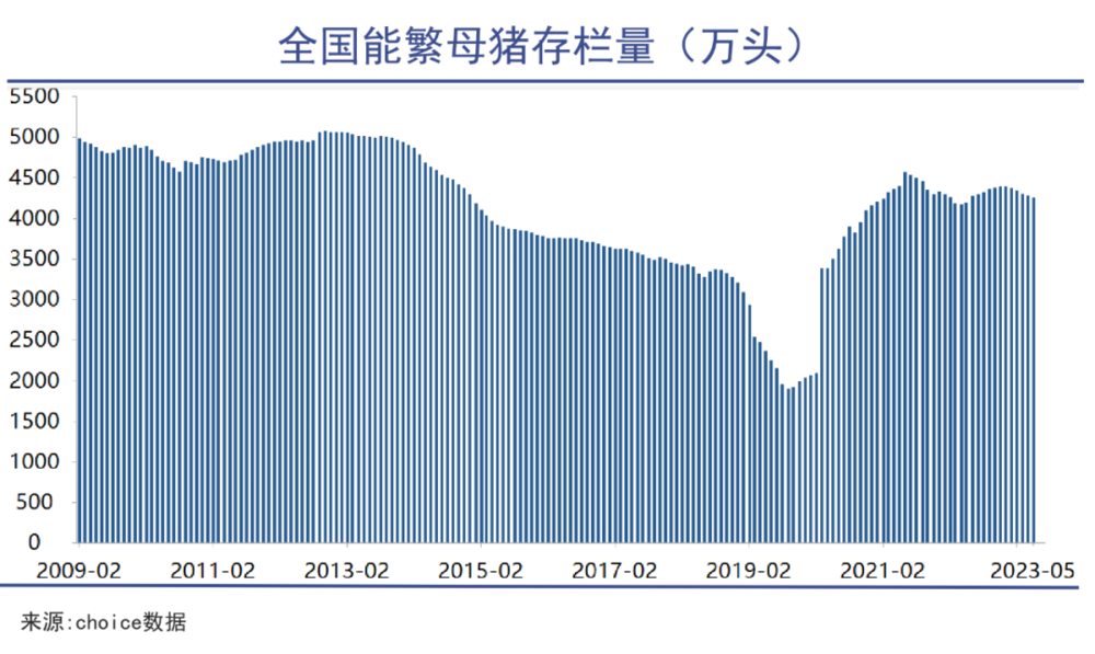 牧原股份5月底能繁母猪存栏约298万头,创2021年一季度以来的新高;温氏股份5月底能繁母猪存栏超过145万头,较去年底新增5万头;神农集团则表示其目前现有母猪产能已经达到满负荷运营,将继续推进母猪产能建设。