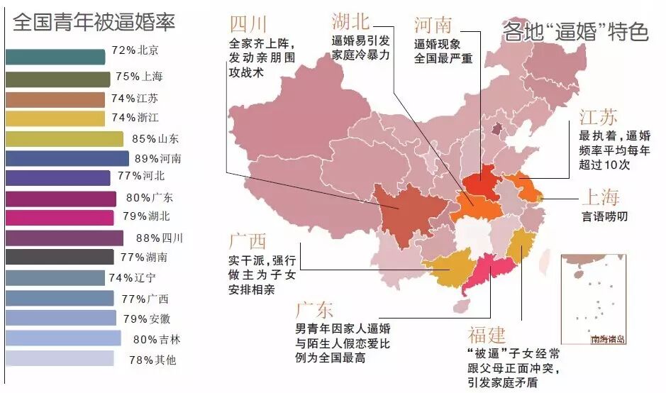 去年,中国关心下一代工作委员会(是的,你没有看错)发布的《中国逼婚现状调查报告》显示,逾七成受访者曾被父母逼婚,25至35岁的青年被逼婚率高达86%,甚至有3%的青年未到法定结婚年龄就被父母逼婚。