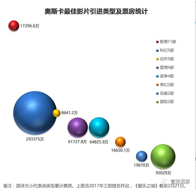 奥斯卡奖历来注重表彰人文上的艺术成就,因而剧情片的提名数量一直领先于其他类型,这一比例也在引进的奥斯卡最佳影片中得到体现:截至目前,共有11部提名或获奖的剧情片亮相内地银幕,接近总数的1/3。