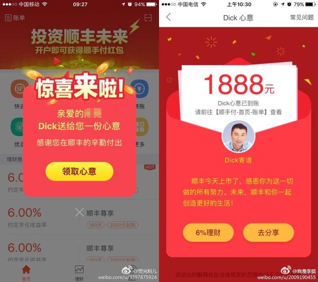 顺丰员工在微博晒出自己的红包