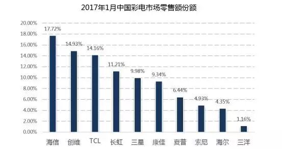 在TCL逐步渗透北美的同时,国内的彩电市场竞争格局,几乎处在一个容不得一丝喘息机会的焦灼状态(如下图所示)。