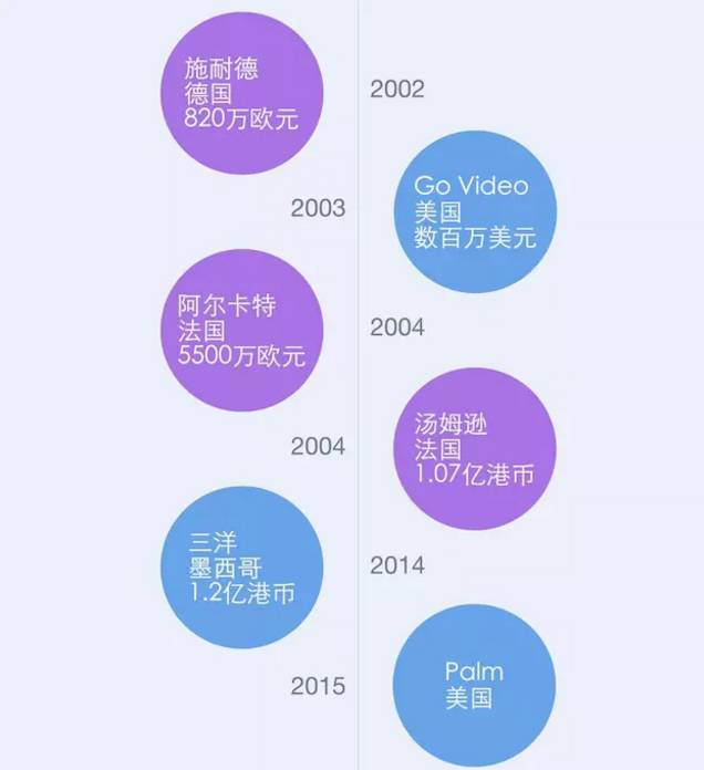 在谈成黑莓之前,TCL在国际市场上的大手笔交易历史(图片来自好奇心日报)