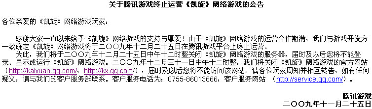 2009年12月25日,腾讯的第一款网游《凯旋》停运。