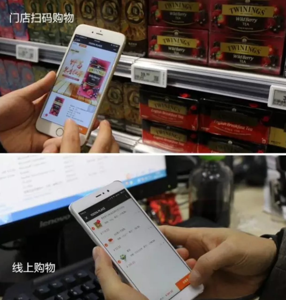 3. 信息同步,顾客可以通过扫描电子价签上二维码跳转到YOOYA线上商城查看商品信息、用户评论等,亦可直接下单购买。