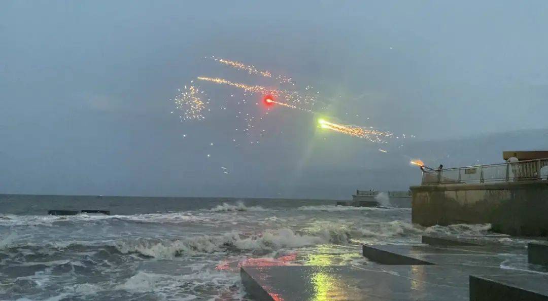 芥子往远处看,有一个栏杆边沿站着的人正举着野烟花,冒出五彩斑斓的光,对准海面发射。“上一次看到这样的场景,还是过年的时候去奶奶的老家。这东西叫加特林,太野了。”