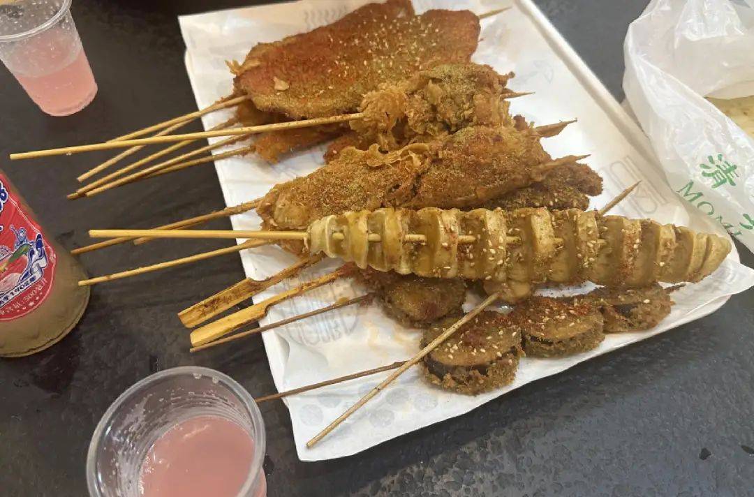 咸口的传统炸串,在天津也摇身一变成了带有点异域风情的番茄酱口。如果你要问为什么,这可能就像上海街头总有人在推着自行车卖咖啡。