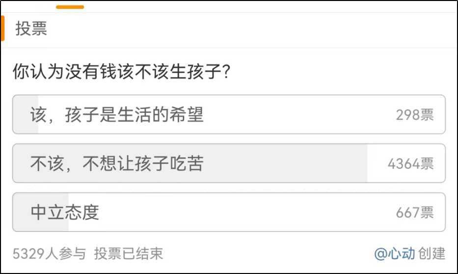一份网络投票显示,如今8成以上的网友觉得,没钱就别想下一代的问题了。