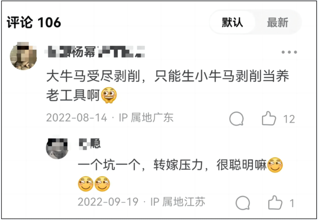 又立即被嘲讽:“大牛马受尽剥削,只能生小牛马剥削当养老工具。”