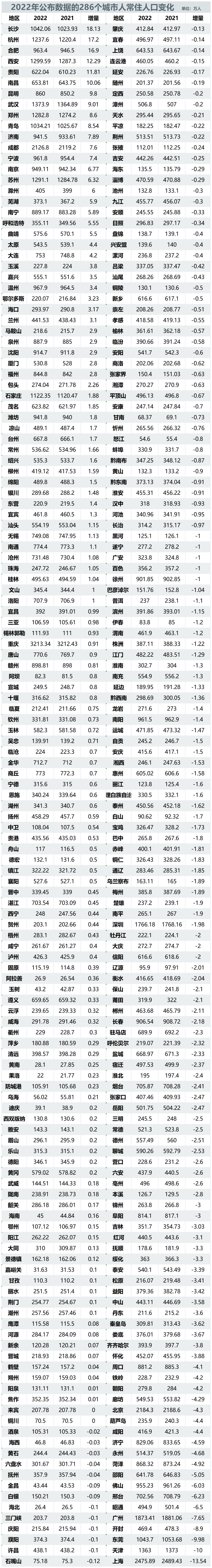 到目前为止,全国共有286个城市公布了2022年人口数据,结果发现,人口增长的城市只有128个,两个持平,156个城市人口在减少。