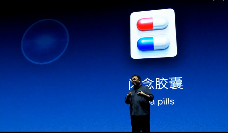 继续欣赏弹幕,请注意这场主会场幕布上的黑色发光体,一颗黑色的“药丸”,论自黑,就服锤子: