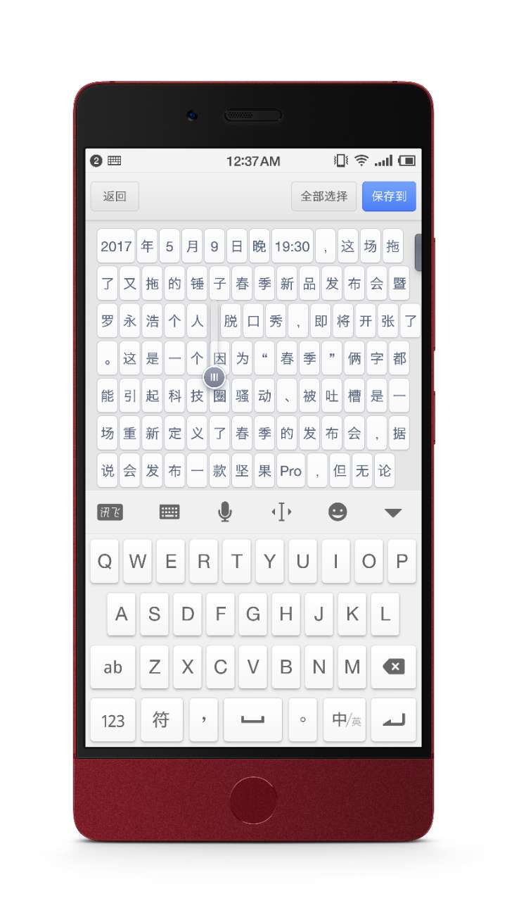 决定一款产品外观设计的好坏,往往就在看到真机的第一眼。在发布会后第一时间拿到了坚果 Pro 的酒红色版本和细红线特别版,这与这台让老罗哽咽的坚果新机相处一晚,试用了占用了超过一个小时发布会时间的系统新功能后,有了下面这些体验。