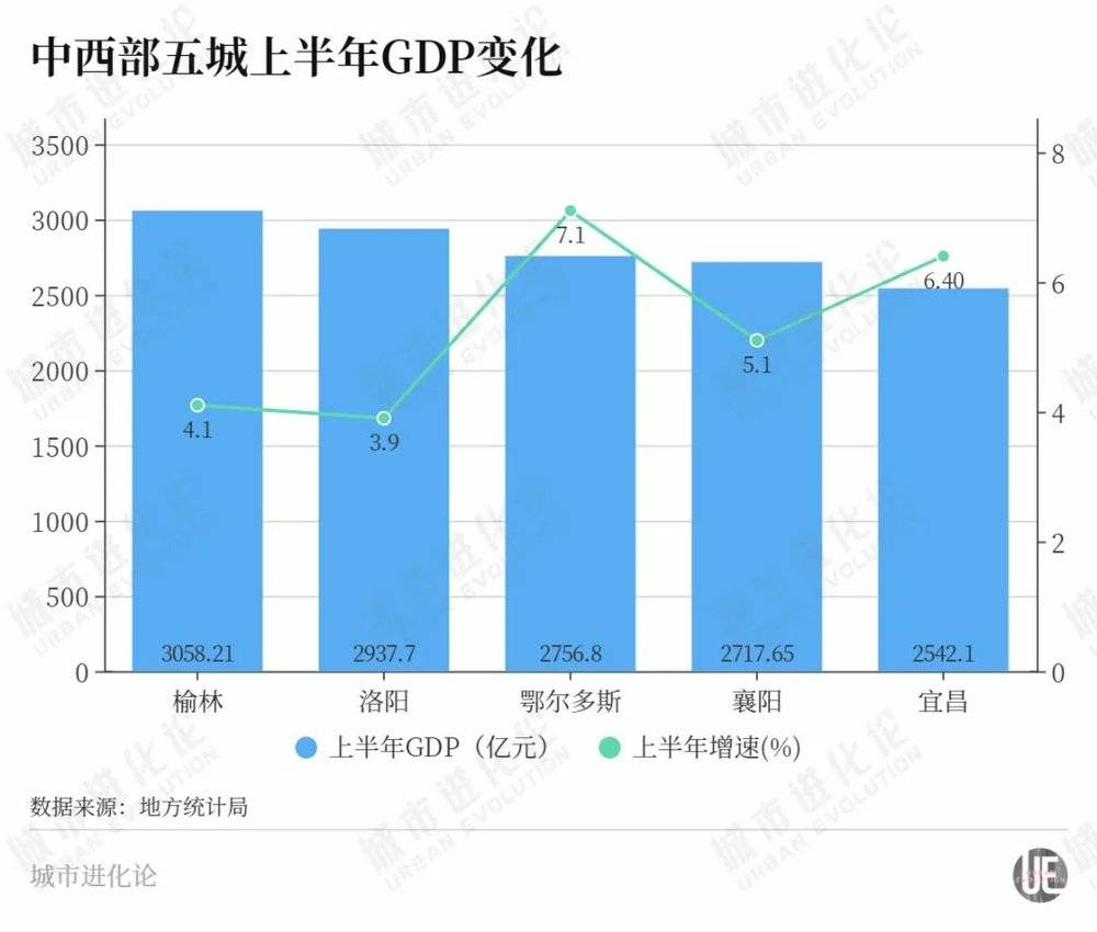今年上半年,洛阳GDP达2937.7亿元,同比增长3.9%。即便是增速低于全省,但是总量上却完成了对襄阳的反超。不过,要想拿回“中西部非省会第一城”的座次绝非易事,领跑的榆林已经跨过3000亿台阶。