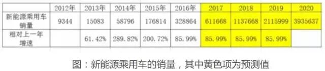 按照如今的86%增速发展趋势(可能性极小),截止到2020年补贴取消为止,新能源市场规模预计有400万辆左右。官方的期待是250-300万辆。