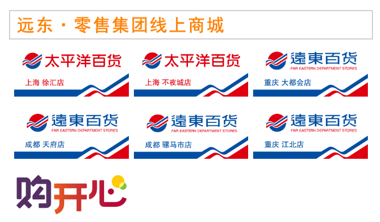 上海太平洋百货的官方微信号内,单独展示了远东零售集团的线上商城链接——购开心。网站的注册信息显示,该网站最早建设于2011年。目前,页面最下方展示着远东百货在大陆的三家门店:远东百货重庆江北店,MIDTOWN大连店以及太平洋百货徐汇店。