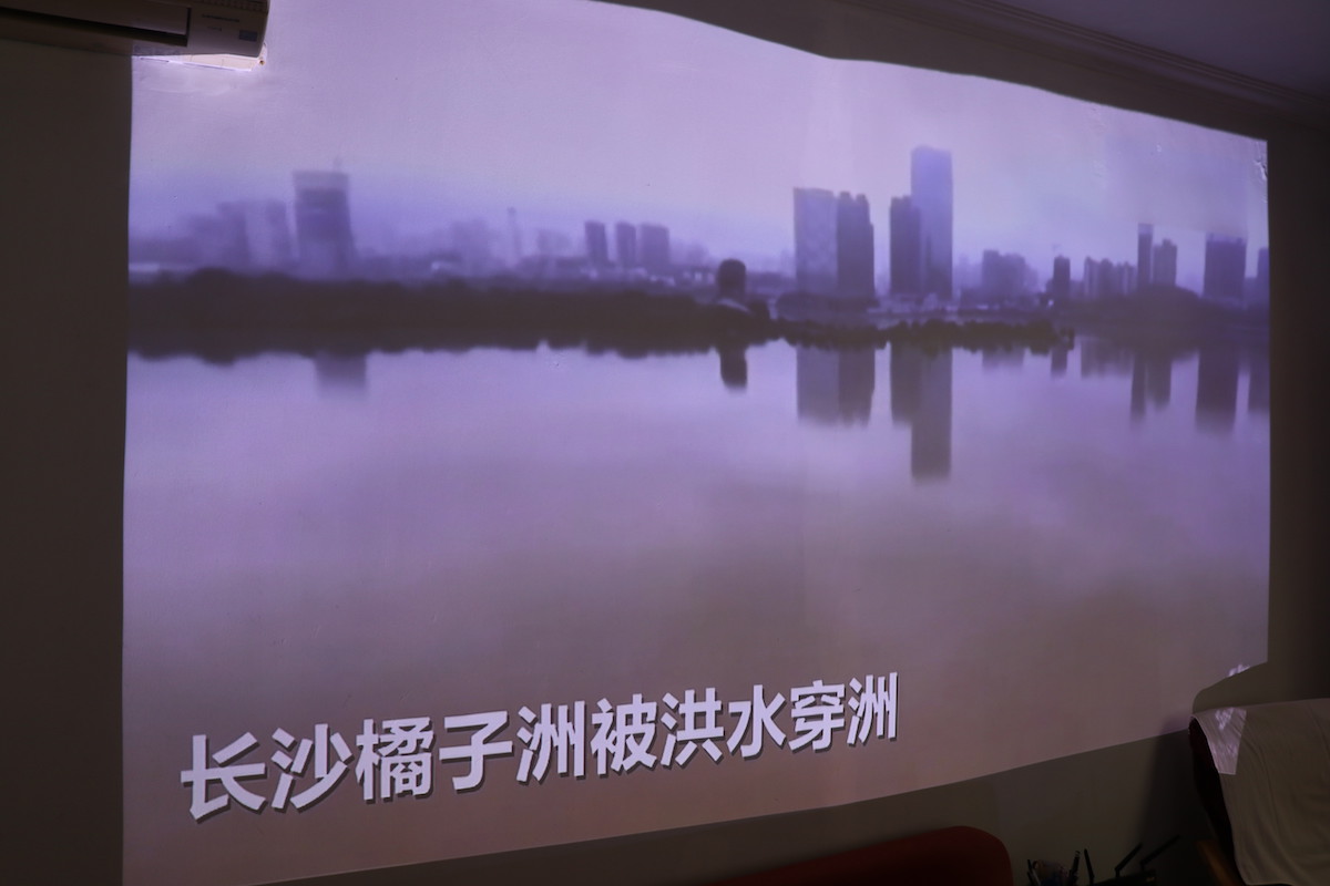 实际上,真正适合这种激光投影仪的,是特制的灰幕,能够实现最好的投影效果。但毕竟设备都是借来的,花大几千买效果最好的灰幕也不太合适,就用了最朴素的方式,直接将投影仪投射到白墙上。