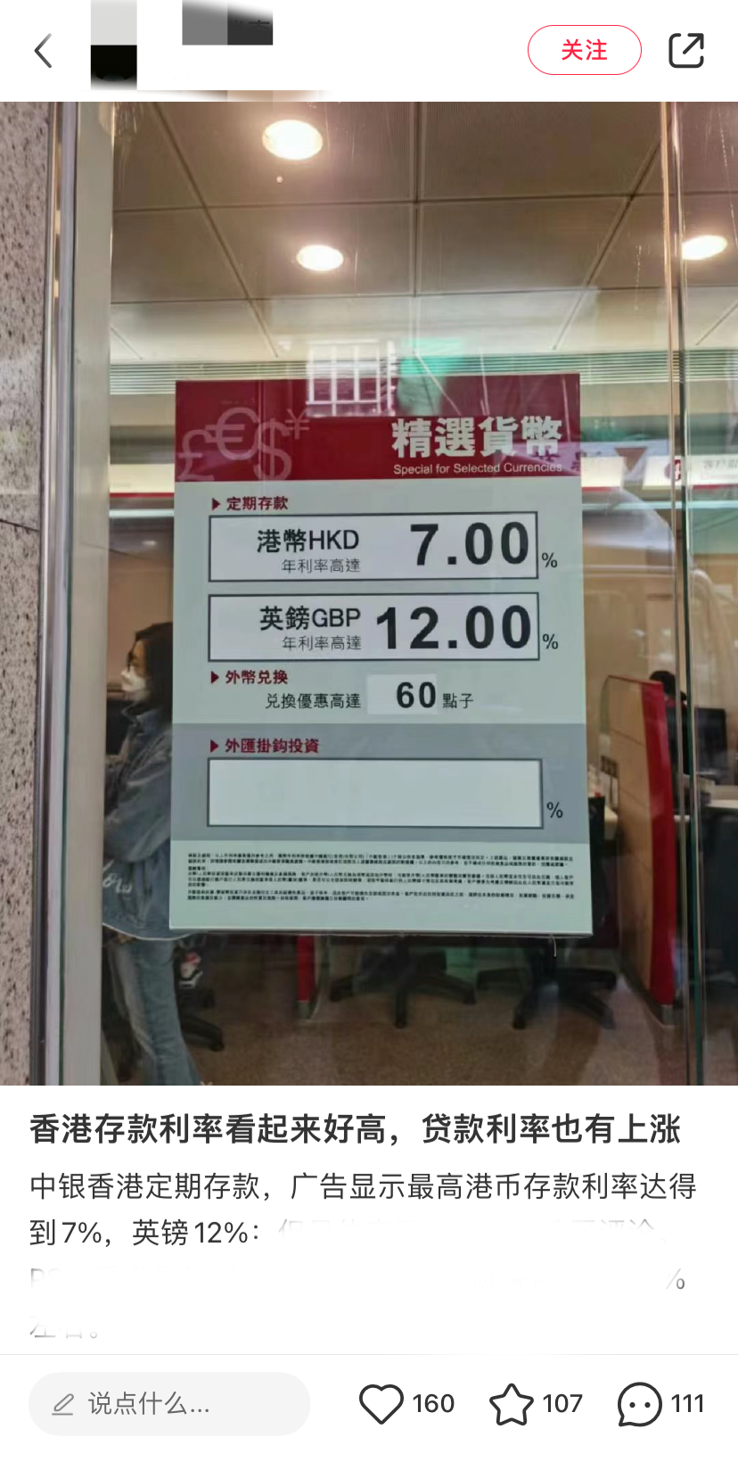 △社交媒体上,不少人被香港定期存款利率吸引 图源:网络