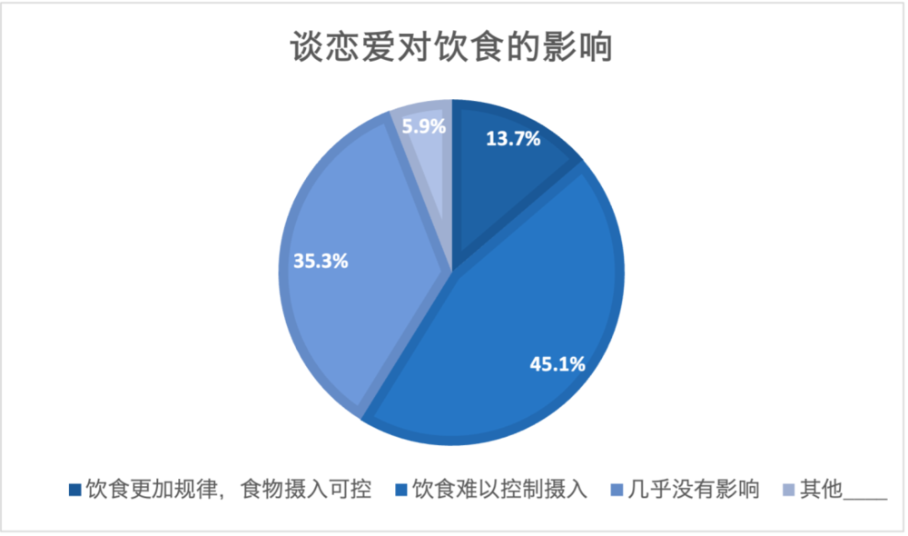 有45%的受访者表示,恋爱后,不仅伙食更好了甚至还有加餐,饮食摄入难以控制;当然也有14%的人在恋爱后,饮食更加规律、食物摄入尽在掌握,然而这仅发生在健身情侣身上。