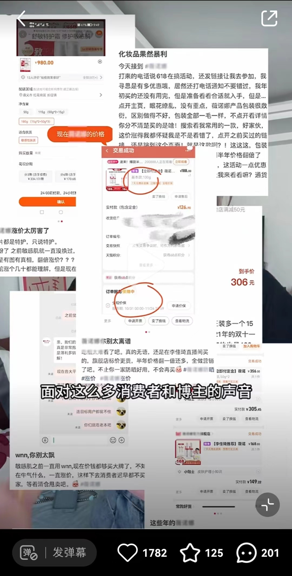 “要是论克算,国货怎么比国际大牌还贵?”新国货美妆一直以“大牌平替”为卖点,李佳琦冒犯消费者的话语,甚至连带着引起了它们的口碑反噬。