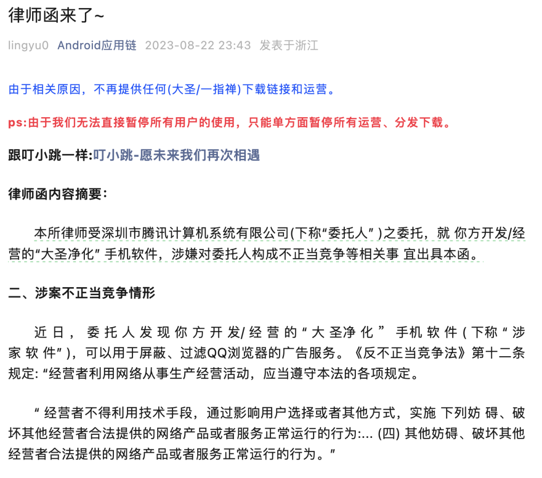 8月底到9月初,所有上面提到的跳过广告工具,全部都收到了律师函,要求下架相应APP。