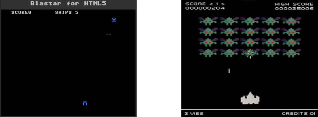 马斯克开发的太空对战游戏《Blastar》(左)街机游戏《太空侵略者》(右)