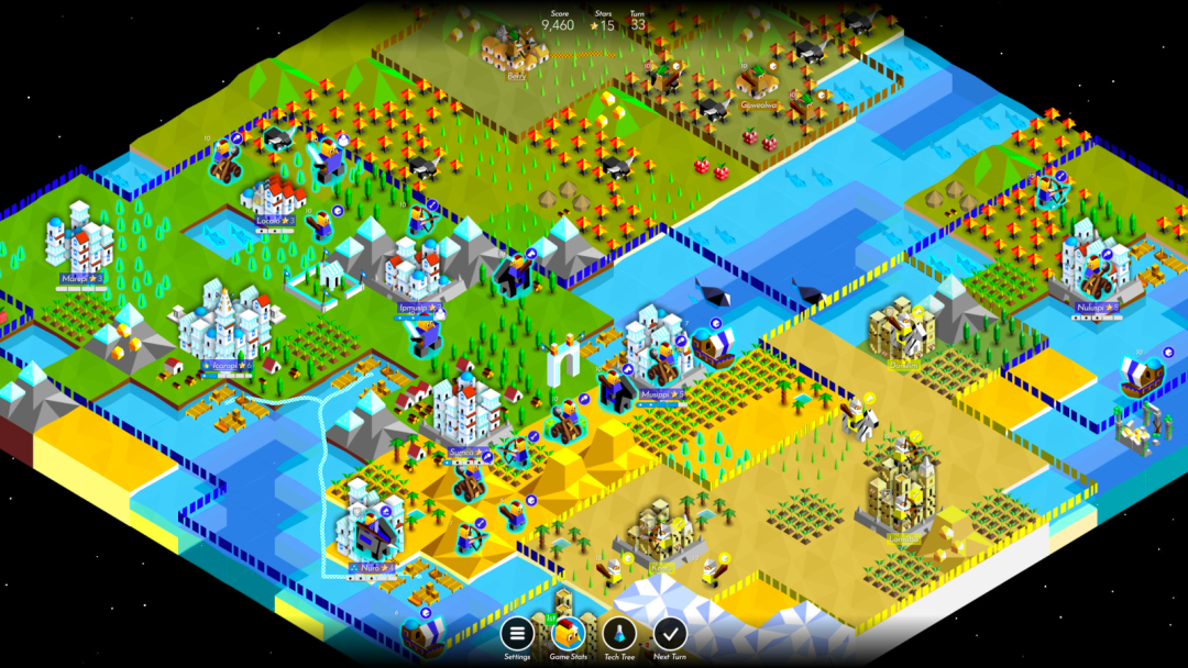 [3]《低模之战》(The Battle of Polytopia)是瑞典游戏开发商Midjiwan AB打造的一款像素风格的回合制策略冒险类游戏。