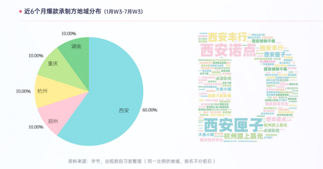 更让北京上海的传统影视公司嫉妒得牙痒痒的,是这些头部玩家居然大多集中在西安。2023上半年登上周热门榜单次数前十的制作公司里,有六家公司来自西安。