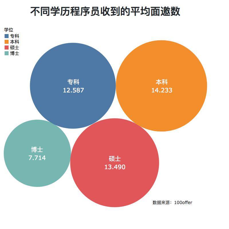 那么,在获取 offer 方面,不同学历背景的程序员表现又如何呢?